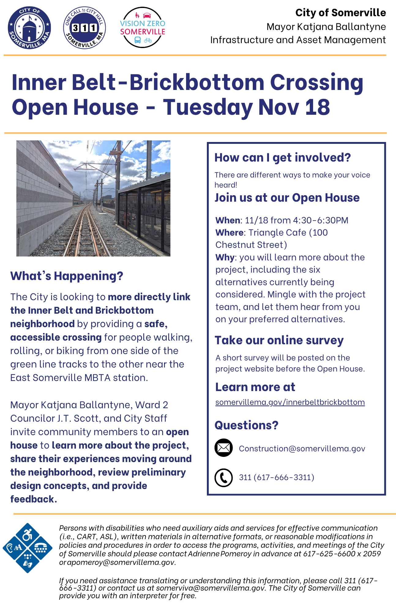 Residents and visitors, looking to move between the Inner Belt and Brick Bottom neighborhoods must follow a lengthy route that uses an underpass on Washington Street. To make getting around easier—the City of Somerville is looking to develop a new crossing across the Green Line Extension tracks that more directly links the two neighborhoods.